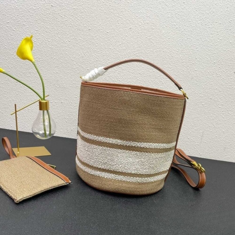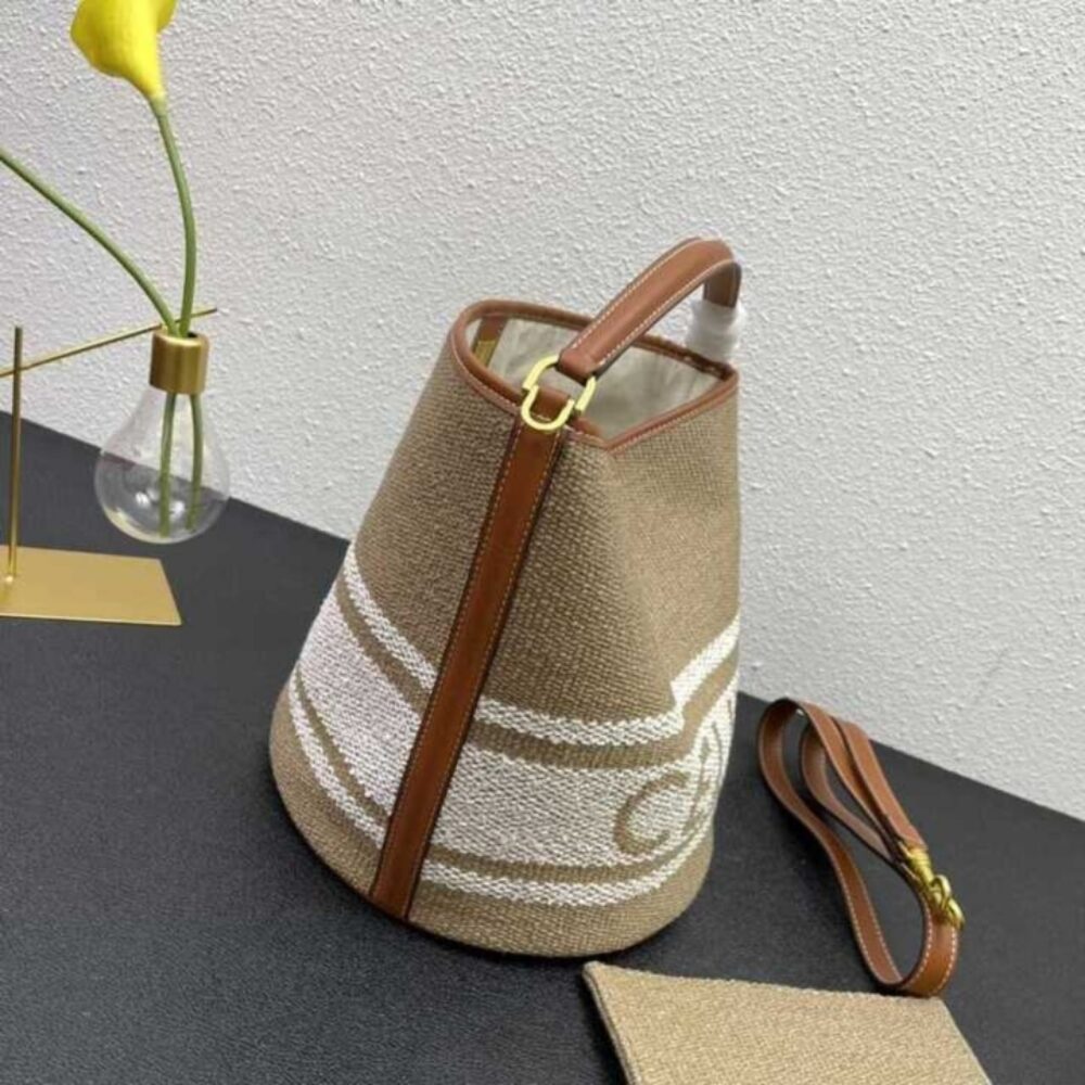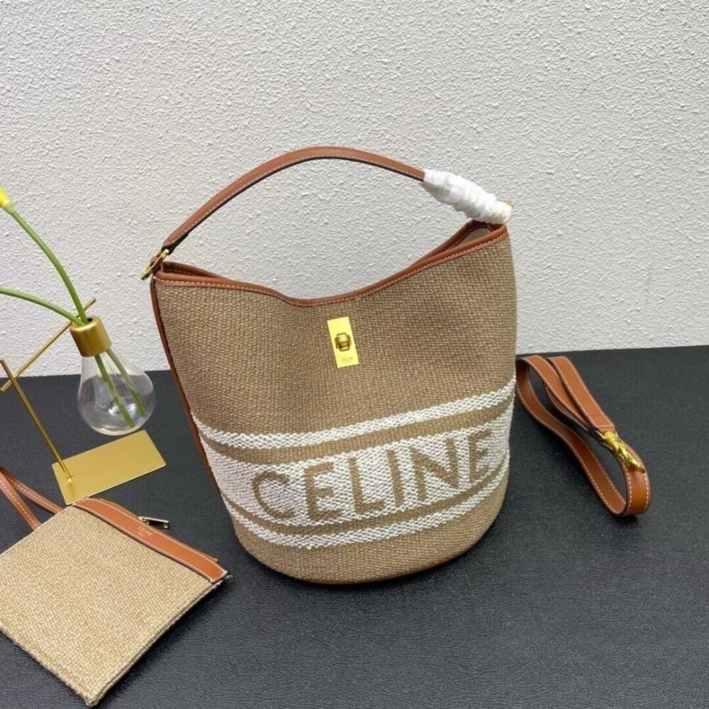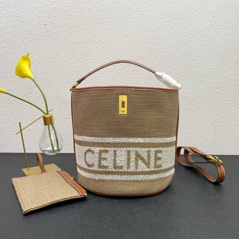 Celine 16 Bucket Bag In Textile With Print and Smooth Beige 25Cm 1955720JB 02ET