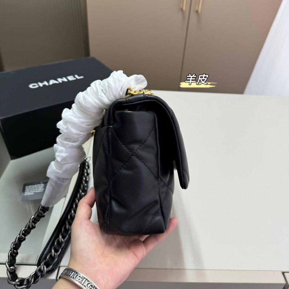 Replica 1:1 – Chanel 19 Handbag Shiny Gold And Silver Tone Metal Black 26cm AS1160 B04852 94305