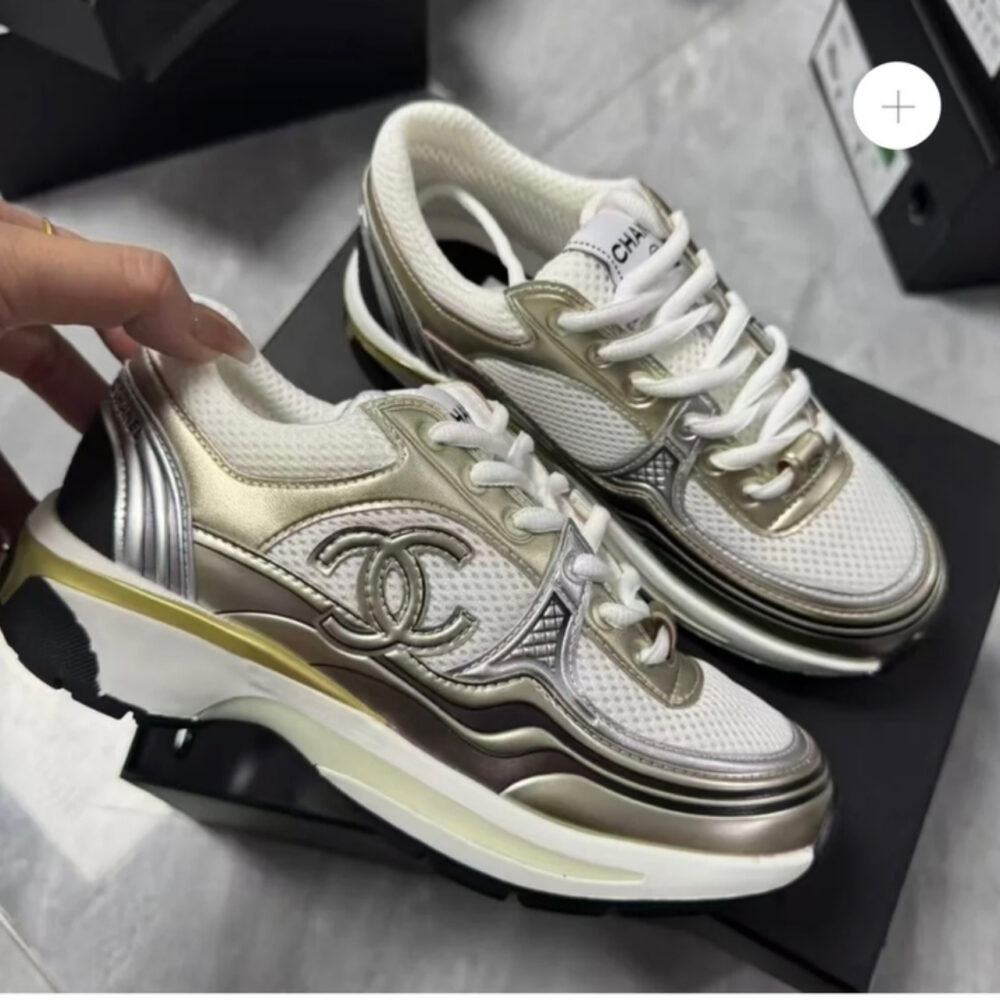 Replica 1:1 – Chanel 23C Sneaker White Gold Silver CC Logo