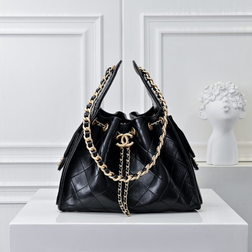 Replica 1:1 – (Super Vip 1:1) Chanel 25 Small Handbag Gold-Tone Metal Black 26Cm AS5311 B20304 94305
