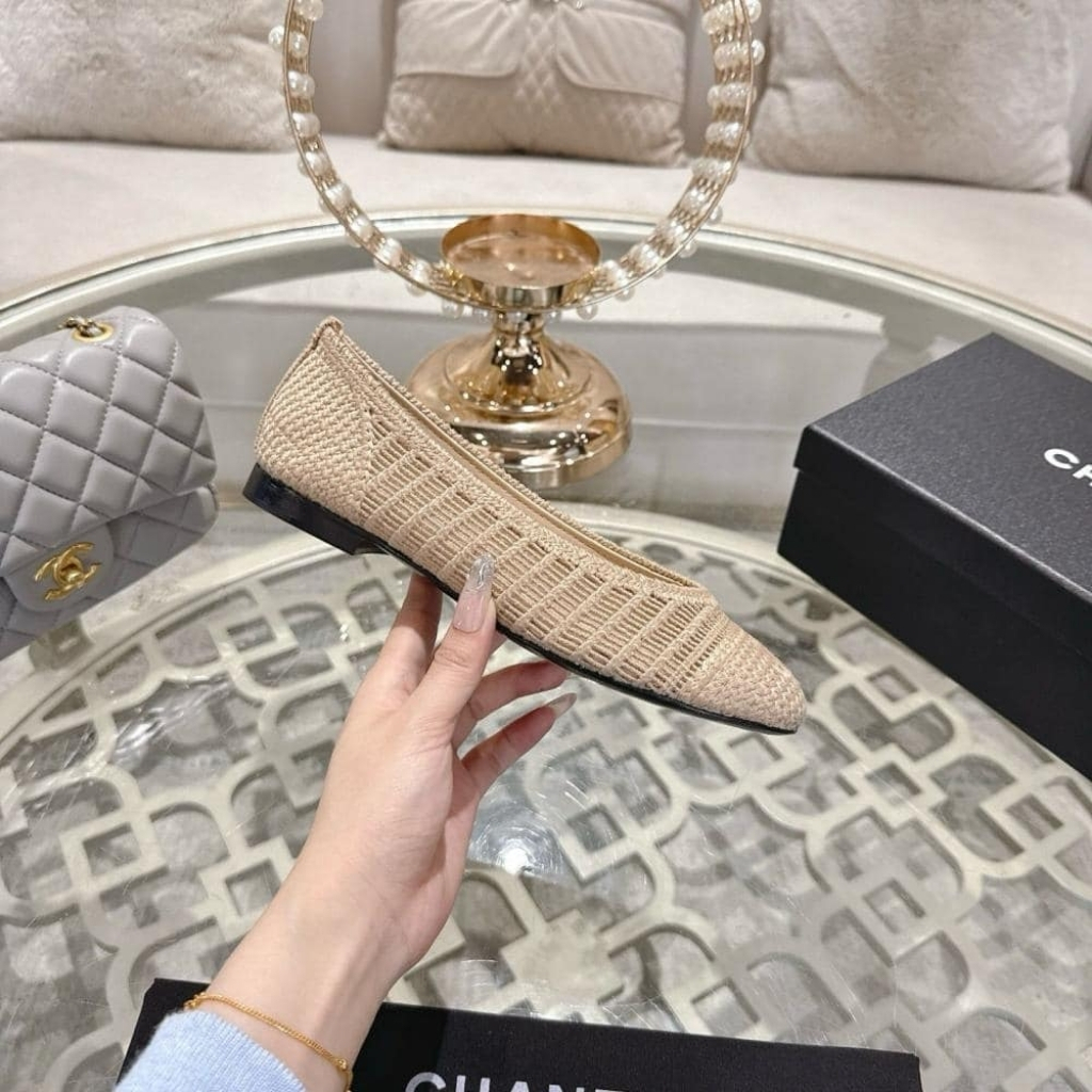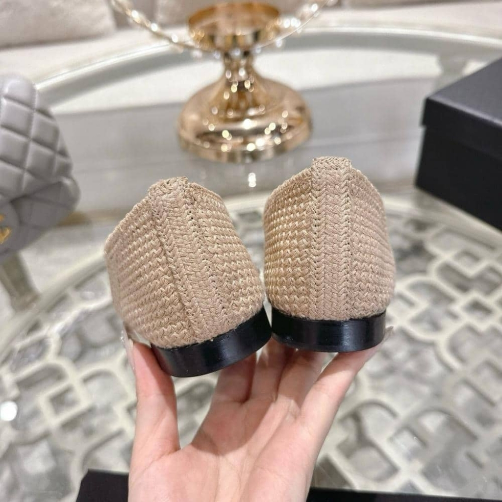 Replica 1:1 – Chanel Ballet Flat Raffia White And Beige G46352 B19806 NAFBO