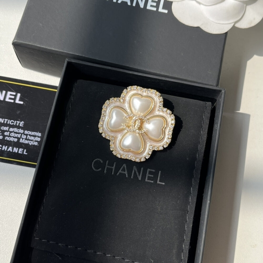 This brooch is exceptionally attractive due to its soft yet opulent design, centering on the romantic Camellia flower, a key symbol of the brand, rendered in luminous, pearlescent petals. The classic elegance is amplified by the brilliant frame of crystals surrounding the flower’s edge and the dazzling micro CC logo nestled at its heart, creating a stunning piece that symbolizes purity and luxury.