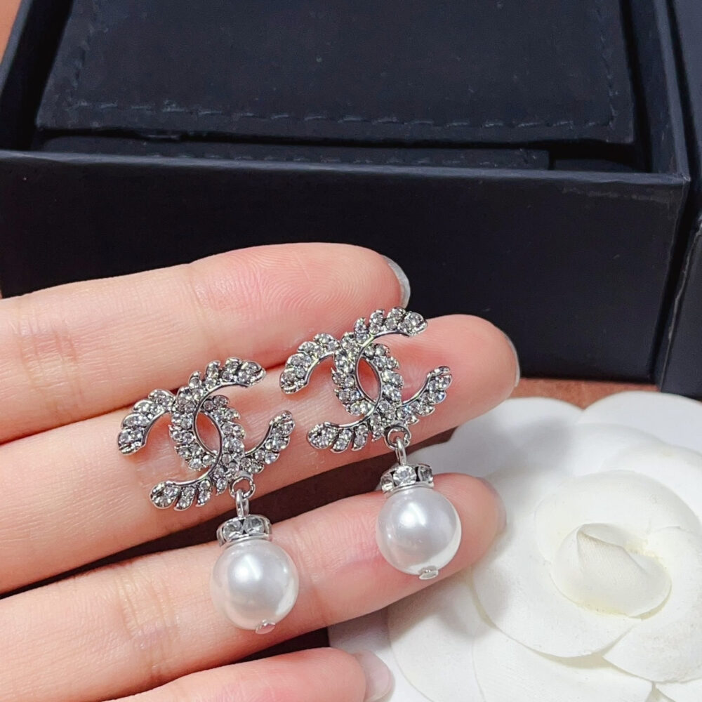 Replica 1:1 – Chanel CC Pearl Earrings Silver