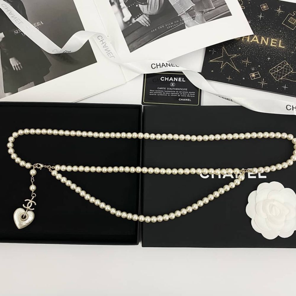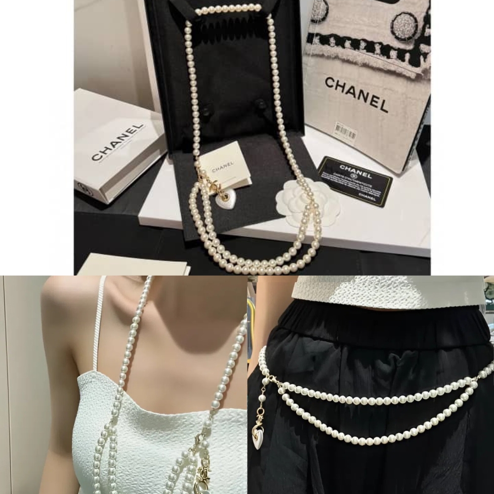 Replica 1:1 – Chanel Double Strand Pearl Necklace with Heart Shaped Charm