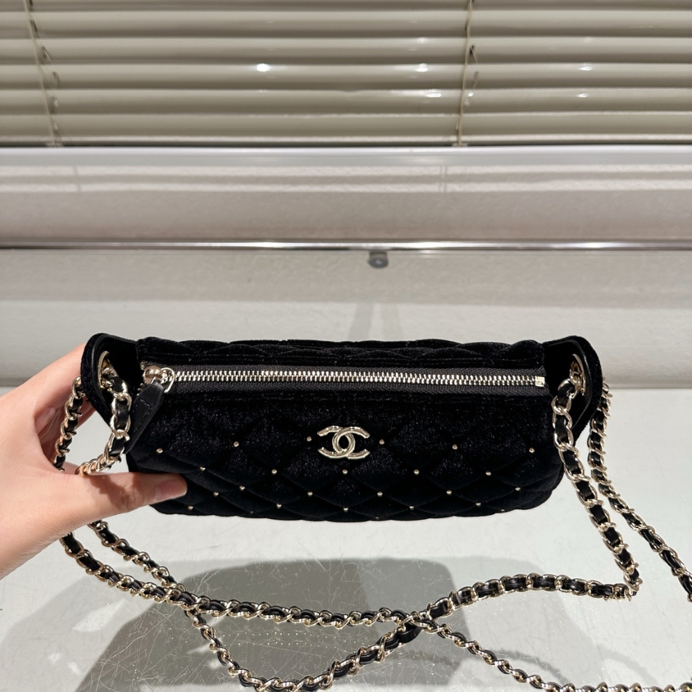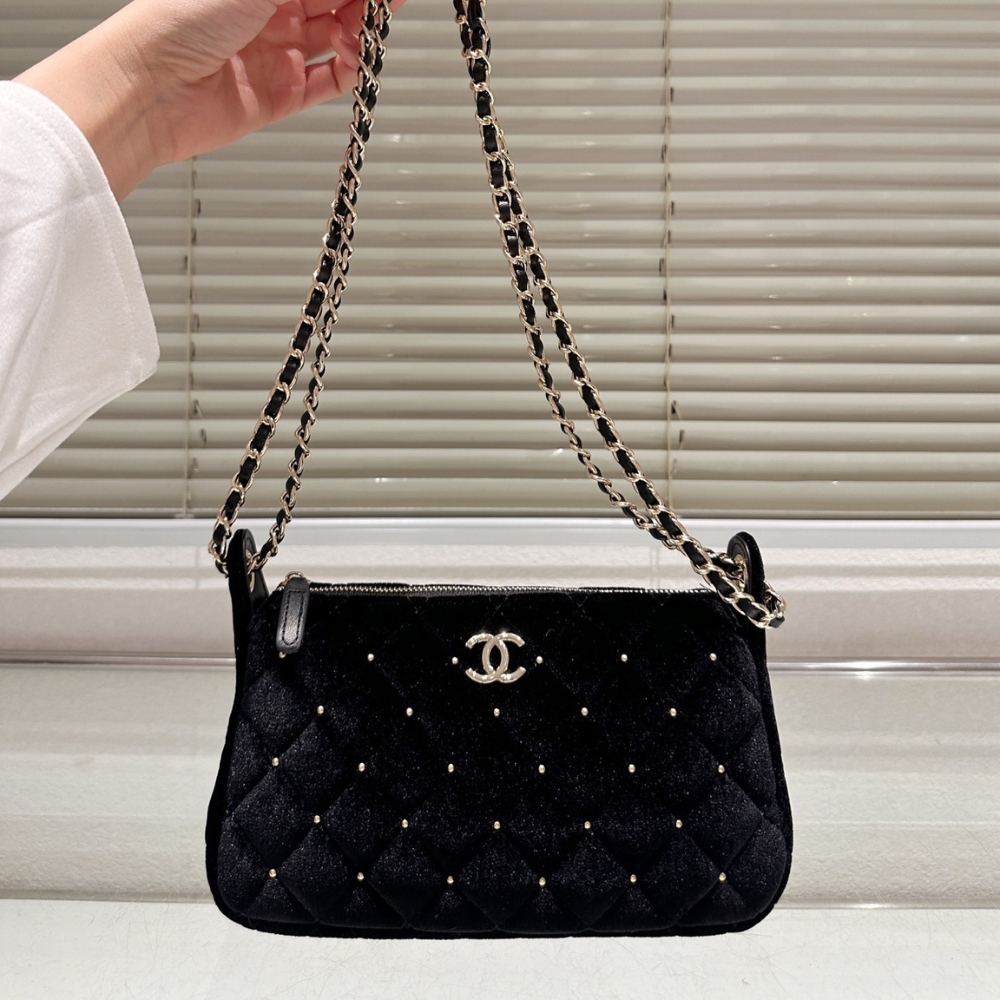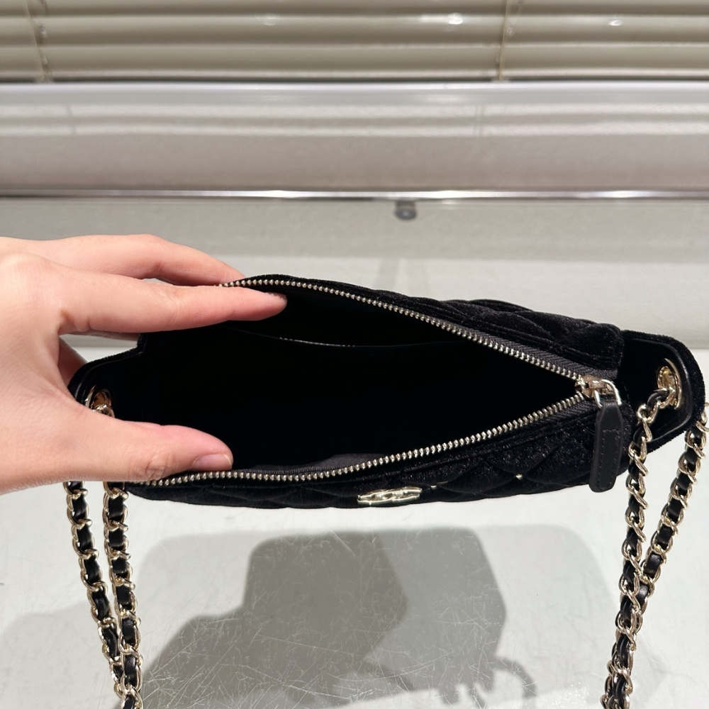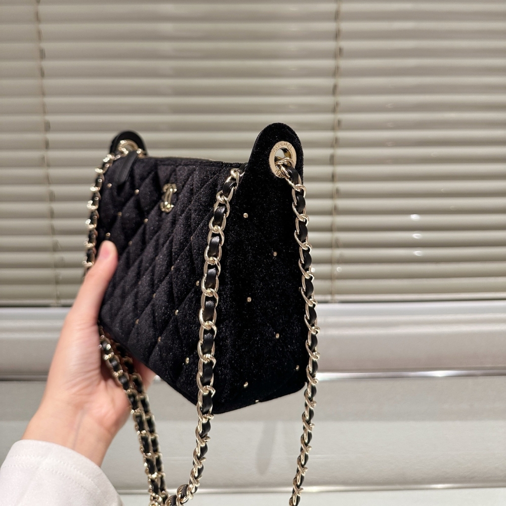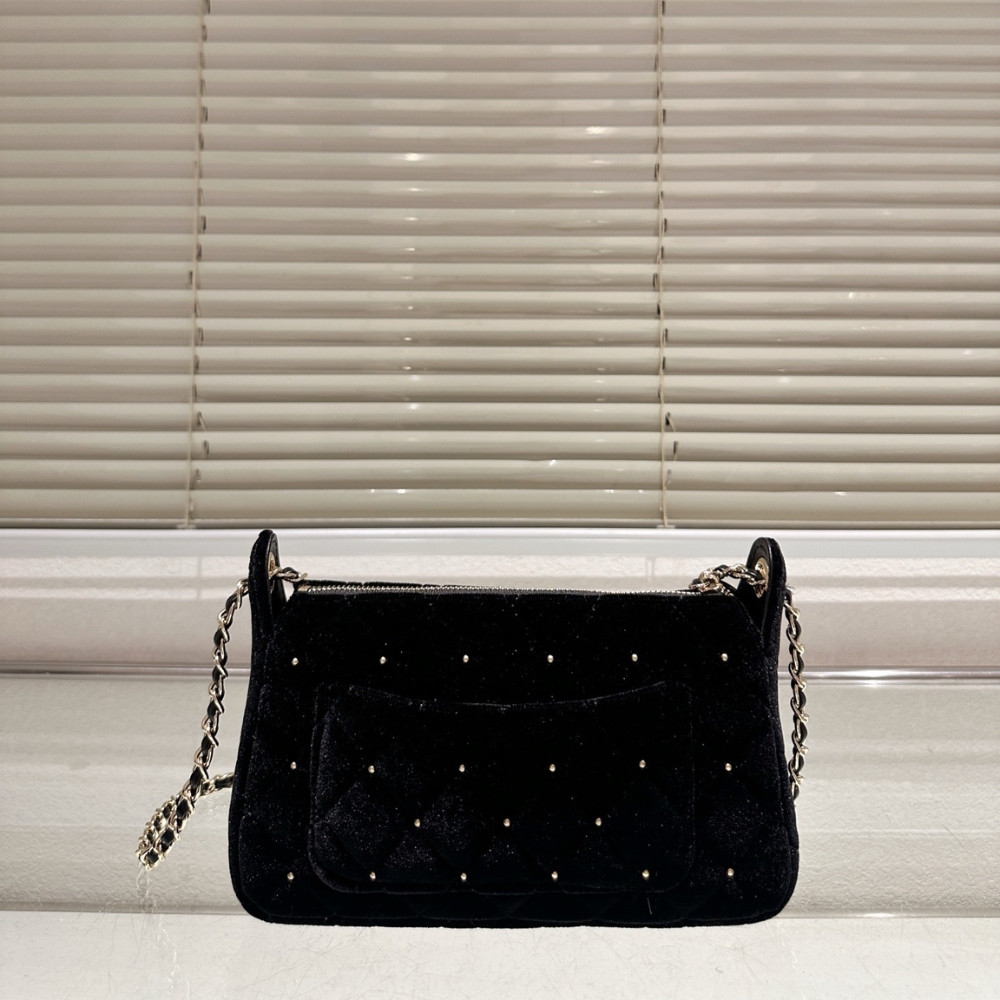 Replica 1:1 – Chanel Velvet Crystal Quilted Chain Hobo Bag In Black 22Cm AP4861 B17652 93405