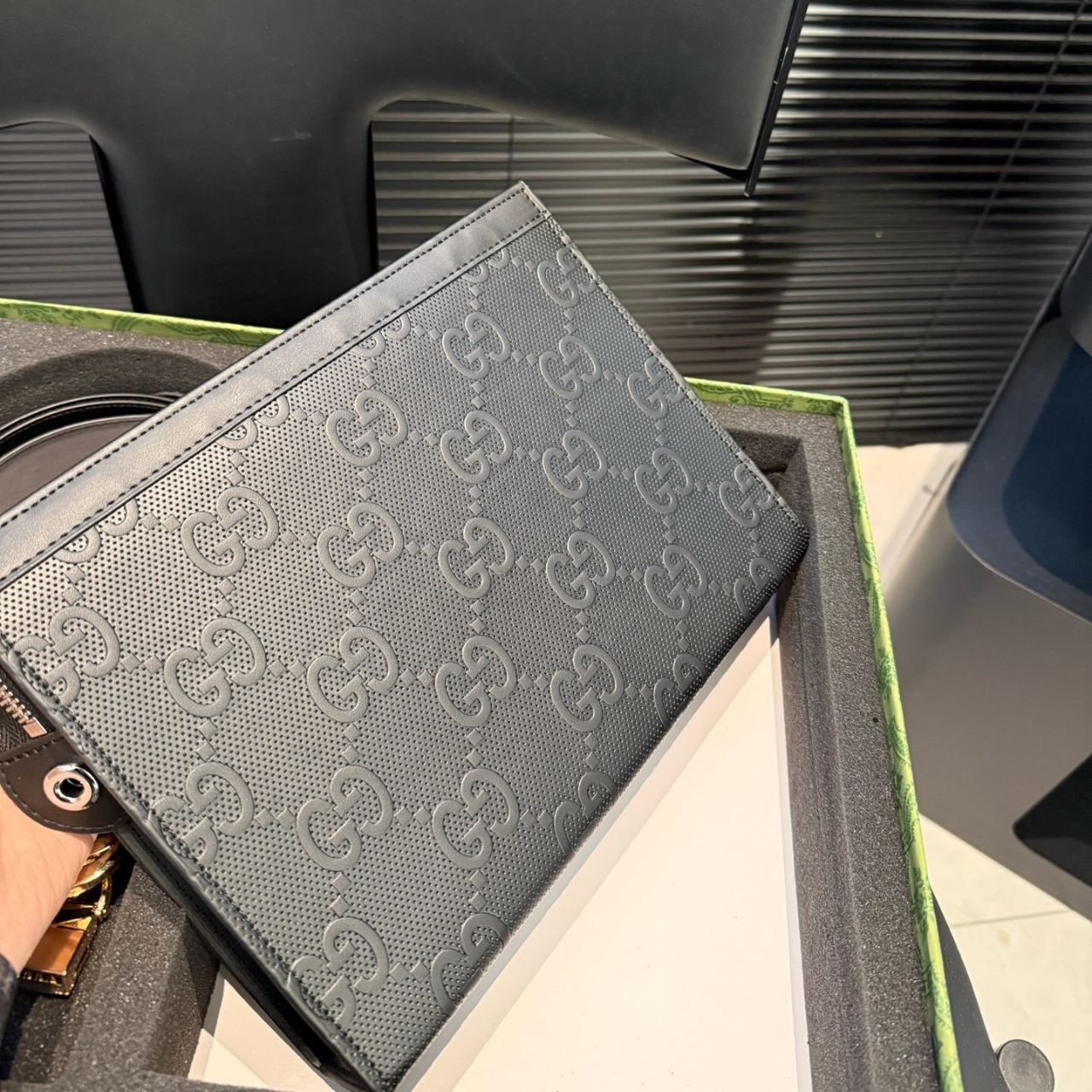 – Gucci GG Embossed Pouch Black 34Cm
