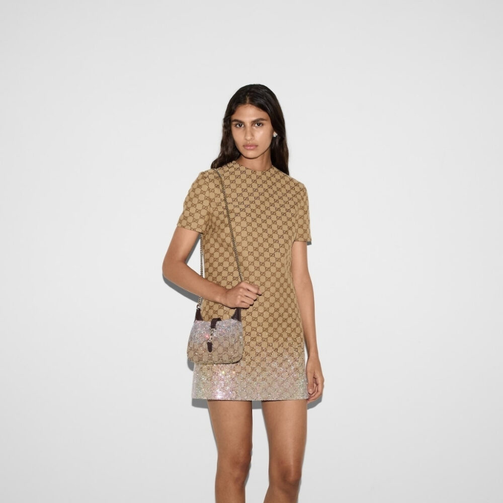 – Inside: 1 open pocket with Gucci trademark and Jackie Notte script