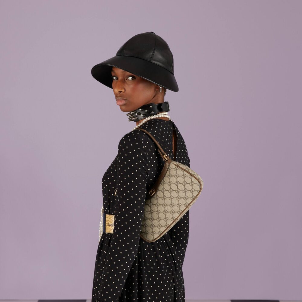 Guccio Gucci’s everlasting monogram continues to enrich new designs with a logo feel. This Ophidia small handbag is presented in the historical GG Supreme , complete with the Double G hardware.