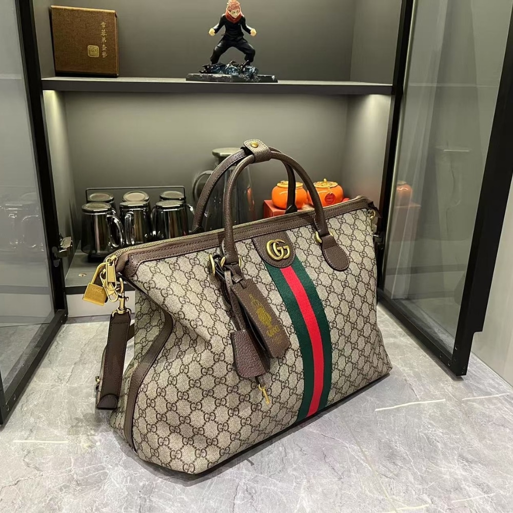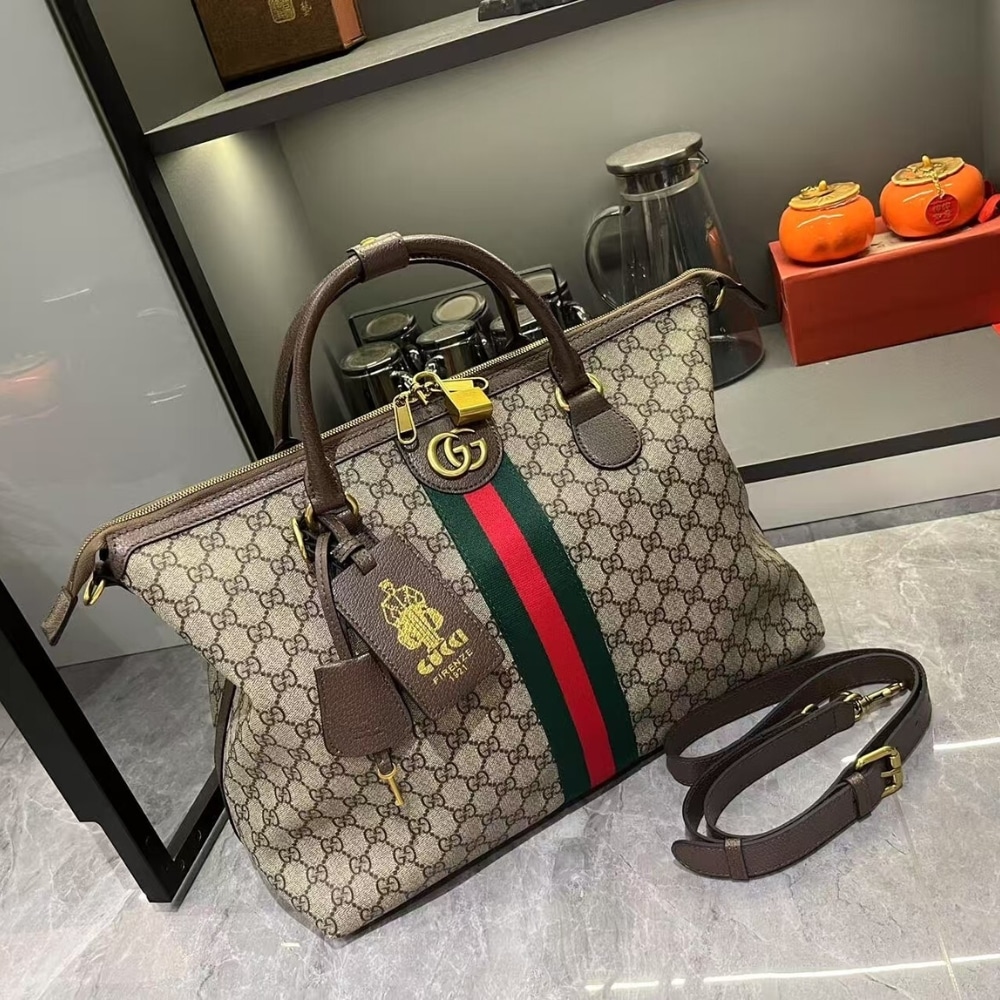 Replica 1:1 – Gucci Savoy Medium Duffle Bag Beige And Dark Brown 48Cm 834469 FAEOI 9746