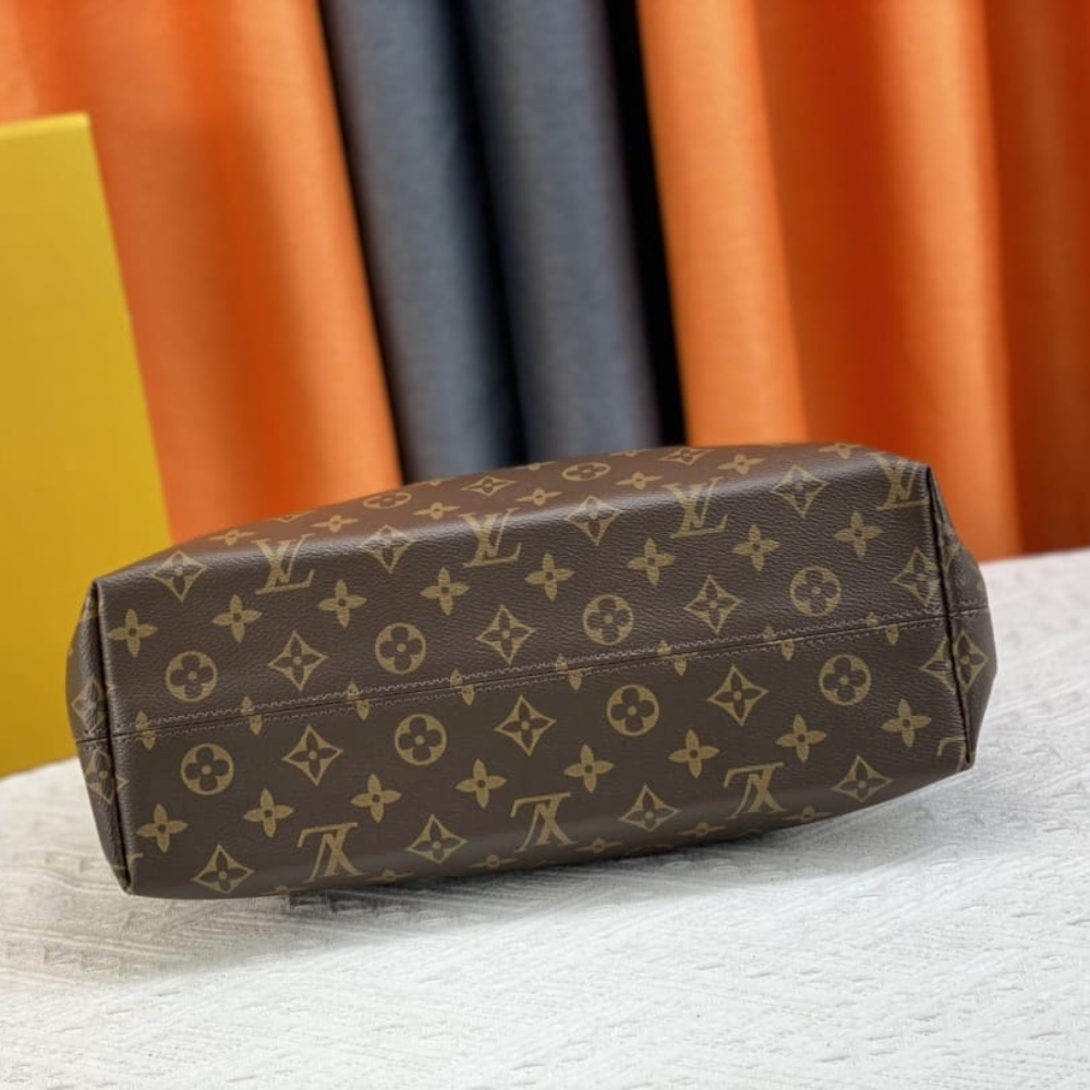 The Louis Vuitton Graceful Bag in Monogram canvas is a chic and practical accessory, designed with a curved silhouette for a relaxed yet stylish look. Its 35 cm size offers ample space while maintaining a lightweight feel. The classic brown Monogram pattern enhances its timeless appeal.