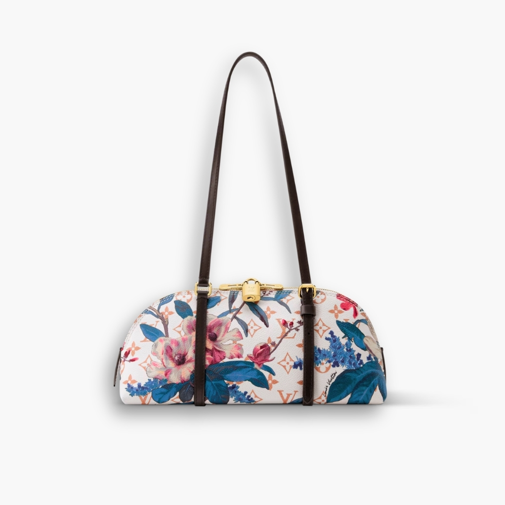 This Squire East West handbag belongs to the Monogram Eden collection. The elongated design is crafted from Monogram Dune canvas printed with a colorful floral pattern and is adorned with a signature gold-toned padlock. It is trimmed with contrasting leather straps, which lend a refined finish, and holds enough space to store daily essentials, including a smartphone.