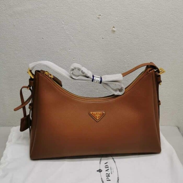 Prada Aimée Large Leather Shoulder Bag Caramel 1BC228 2CYS F03BH V LVM / 39 x 21 cm / 15.4 x 8.3 inch