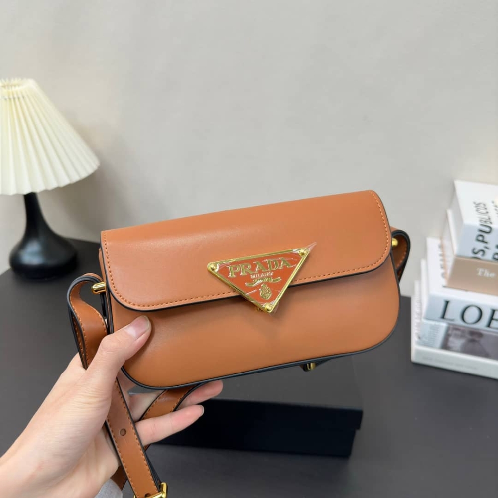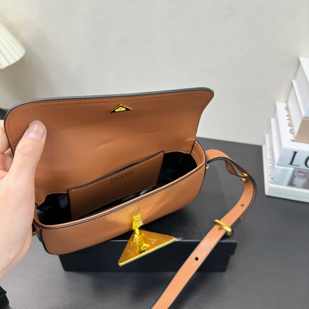 Prada Triangle Logo Shoulder Bag Brown 1BD339 ASK F0XUG V MTO / 21 x 12 cm / 8.2 x 4.7 inches