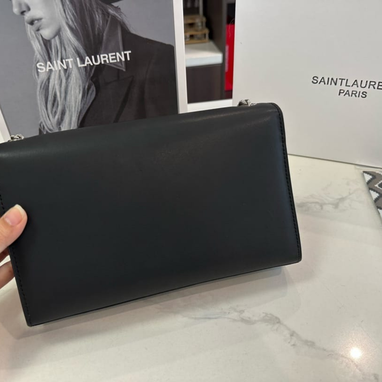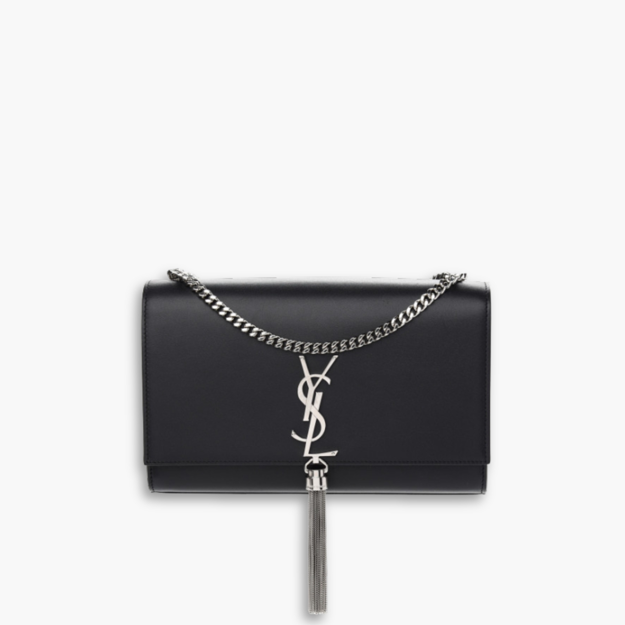 Saint Laurent Kate Medium showcases the iconic Cassandre logo and a chic chain tassel. This stylish and spacious shoulder bag is perfect for both shoulder and crossbody wear.