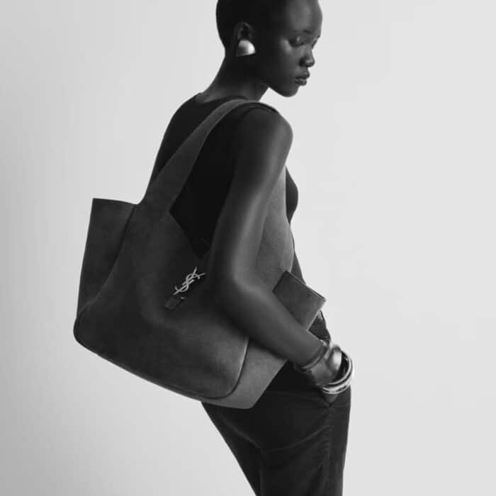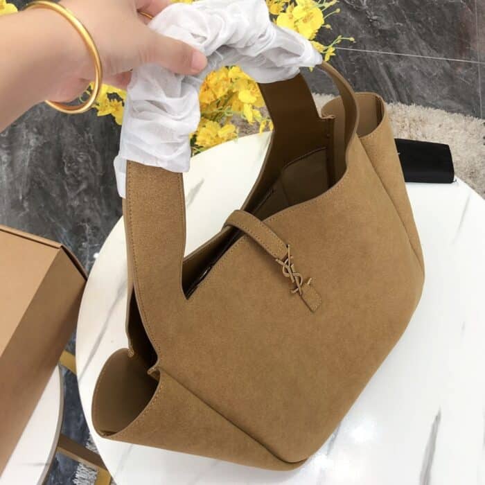 The Saint Laurent Le 5 À 7 Bea in Golden Leaf Suede (50cm) offers a luxurious blend of bold color and elegant design. Crafted in soft, high-quality suede, this oversized bag makes a statement with its spacious silhouette and iconic style. Perfect for day-to-night versatility, it adds a touch of vintage allure to any outfit.