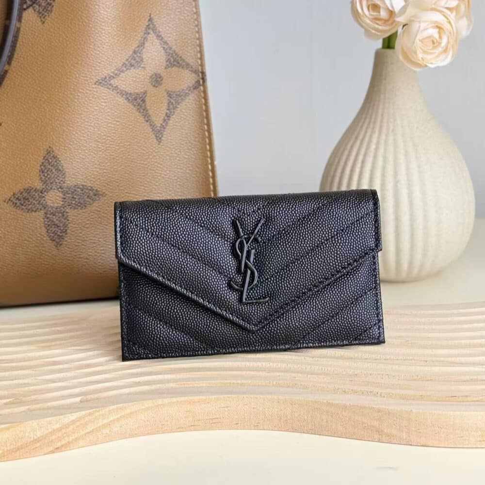 YSL Wallet in Grained Leather Black Hardware 13cm