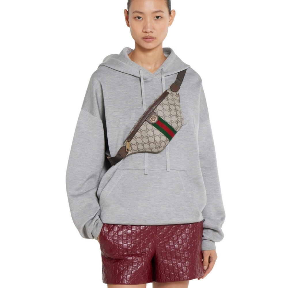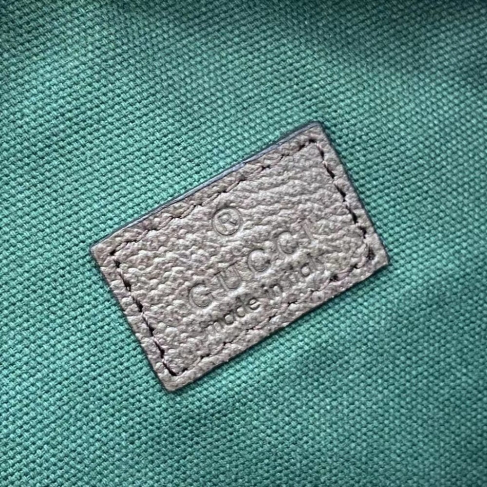The Ophidia collection evokes the House’s heritage with the signature Web stripe and Double G emblem in light gold-toned finish. The styles are crafted from soft GG Monogram coated fabric, featuring green cotton lining inside.