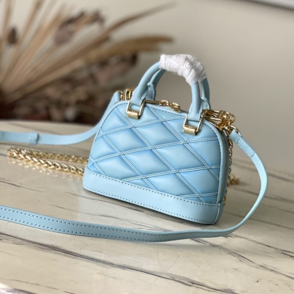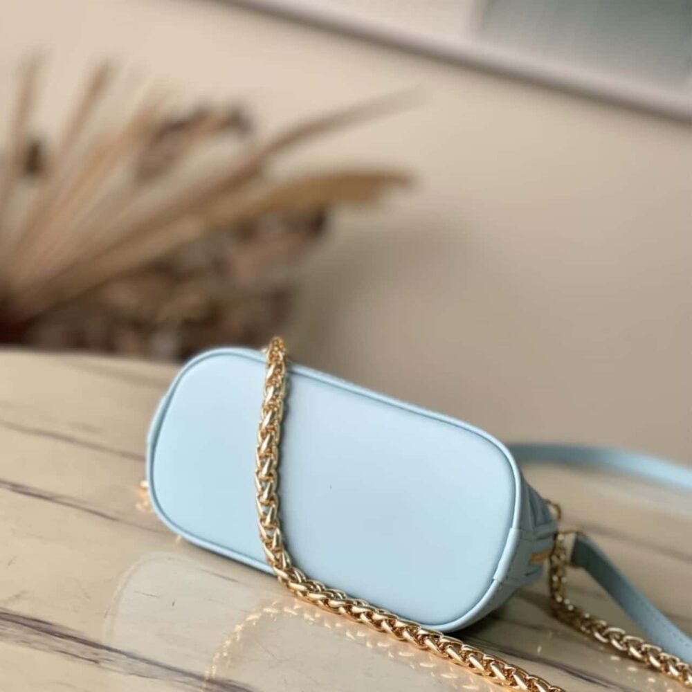 The Nano Alma is a miniature replica of Louis Vuitton’s iconic Alma bag. This design conveys refinement, offering different looks and carry options thanks to its two handles, gold-tone chain and removable, adjustable shoulder strap.
