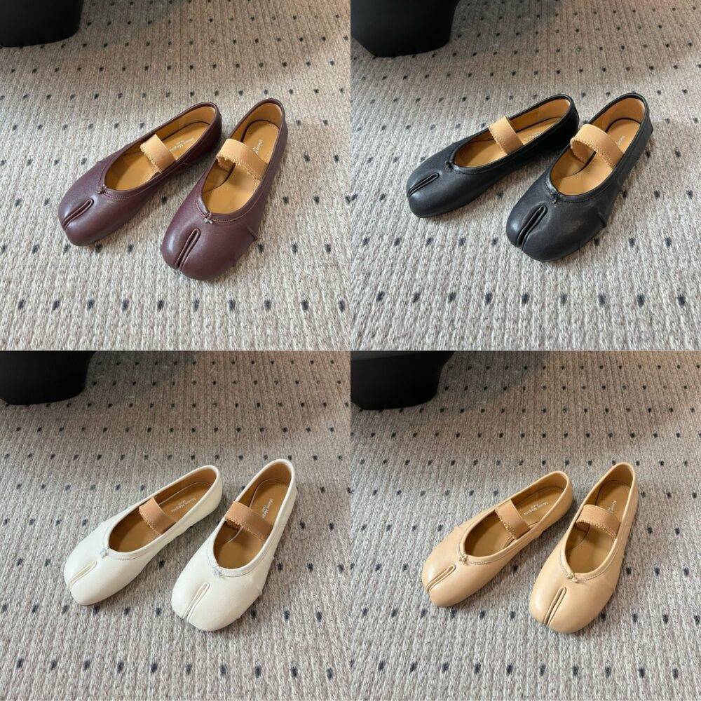 The ballerinas feature a distressed elastic band and the Tabi split-toe, inspired by the traditional 15th century Japanese sock bearing the same name – launched for the Maison’s debut collection in 1989. It captures the avant-garde and insubordinate spirit of the Maison and exists as a heritage classic, continually explored through each collection.